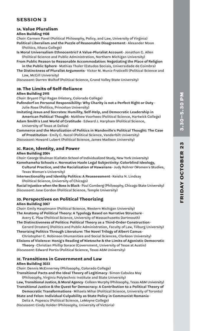 Conference programs for the 2009 and 2010 annual meetings of the Association for Political Theory.